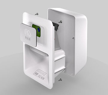 Die Terminals vereinen einen optischen Scanner mit einem Bluetooth LE Beacon zur Koppelung eines Smartphones.
