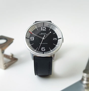 Reduzierte, markante Gestaltungselemente formen eine Uhr mit Charakter und Ausdruck.