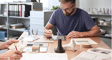 Konzept, Produktanforderungen und Produktionsziele setzen die Rahmenbedingungen für die Entwürfe. Im Dialog mit Ihnen, Anwendern und der Produktion konkretisieren wir schrittweise bis zum fertigen Produkt. Dabei bleiben wir nachvollziehbar und legen hohen Wert auf eine lösungsorientierte Arbeitsweise.